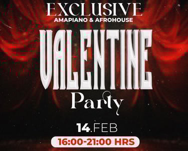 Come celebrate Love with us in our ultimate Valentines Party and experience an exclusive evening filled with Amapiano & Afrohouse vibes. Enjoy electrifying performances, a vibrant atmosphere, and connect with music lovers in Stuttgart. Celebrate love and rhythm on February 14th from 16:00 to 21:00! Get your ticket now—limited spots available!